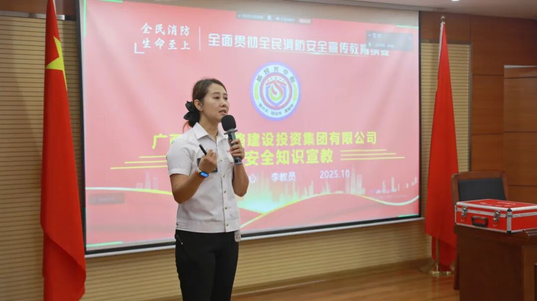 专家现场授课 本次培训聚焦提高职工消防安全管理“四个能力”建设及风险防控意识,特邀广西防控火咨询服务中心的专家进行授课。课程内容紧密结合工作实际,涵盖身边火灾隐患识别、消防法律法规解读、应急逃生与急救知识普及等关键环节,着力提升员工风险辨识能力和自救互救技能,推动企业消防安全治理模式向事前预防转型。 消防安全教育直达集团公司各岗位员工 培训采用主会场与视频分会场联动的方式,覆盖集团公司总部、各子公司及各项目建设办全体人员,有效打通了消防安全教育的“最后一公里”,筑牢企业消防安全防线。 员工积极参与培训,现场气氛热烈 本次培训是集团公司推动消防安全知识向实战能力转化,以学促干、以训促安的重要举措。时值第34个“全国消防日”来临之际,面对旱季施工、岁末年初保通车任务和冬季极端天气等多重风险叠加的严峻形势,集团公司将以此次培训为契机,聚焦工程建设、消防等重点领域,从严从细排查风险隐患,将各项安全防范措施落实落细,坚决打赢全年安全生产收官战, 为企业高质量发展提供坚实稳固的安全保障。 1 END 1 来源: 党委宣传部、安全环保部 编辑: 陈文军 初审: 陈巧梅 终审: 韦名军