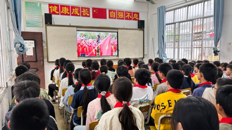 活动以爱国主题教育片《追寻红色足迹》拉开序幕,影片通过鲜活的历史画面与英雄故事,带孩子们“穿越”到革命年代,感受先辈们的热血与坚守。屏幕前,同学们坐姿端正、眼神专注,感受着红色光影。