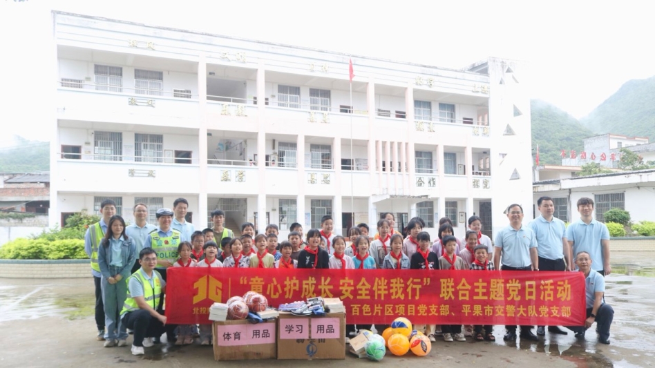 为深化党建引领社会责任,在“六一”儿童节及“2025年安全生产月”到来之际,5月28日,百色片区项目党支部联合平果市交警大队党支部走进平果市马头镇同仁小学,开展“童心护成长 安全伴我行”主题党日活动,以红色教育浸润童心,以安全知识守护成长,为孩子们送上一份特别的“六一”礼物。